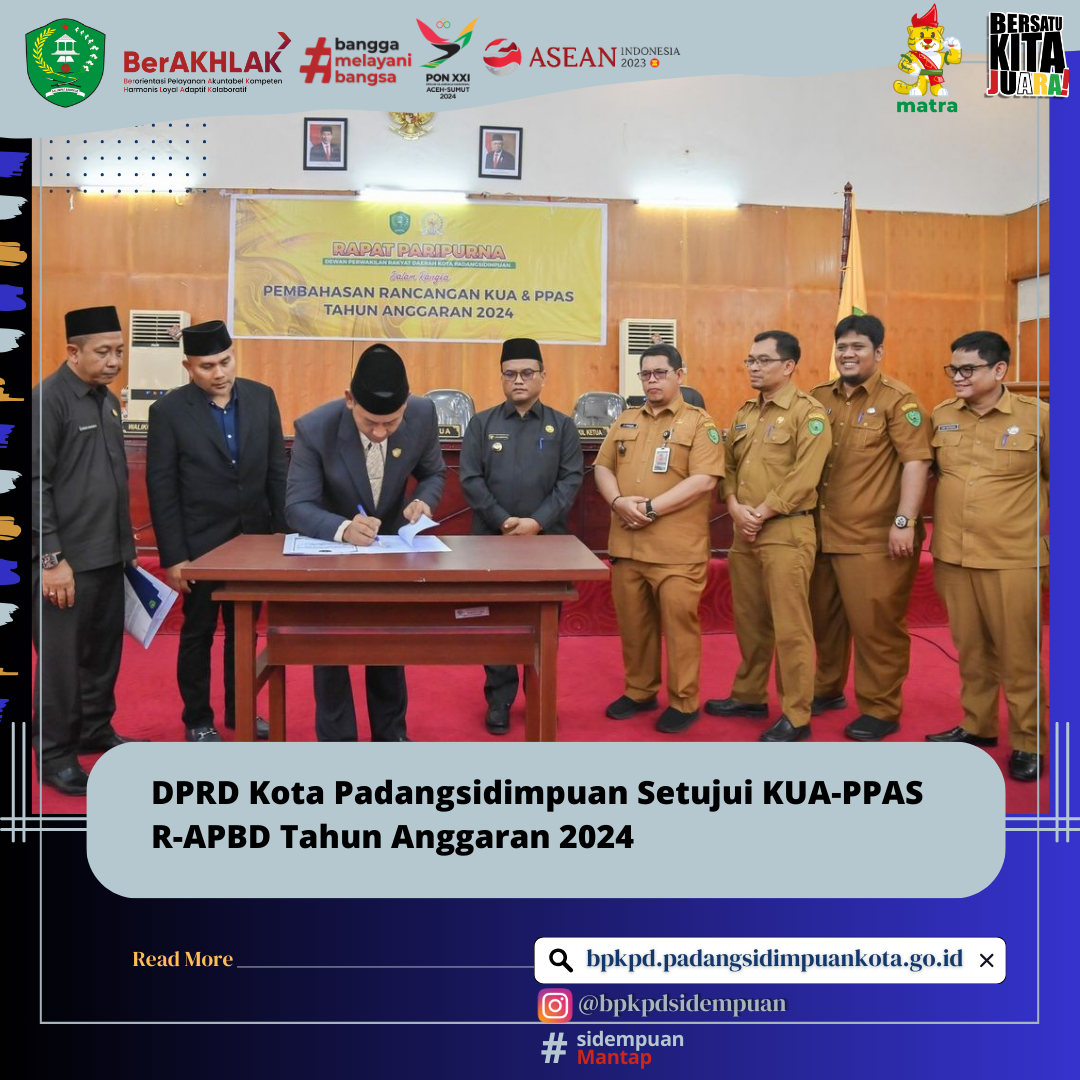 Sebelumnya, juru bicara Badan Anggaran (Banggar) DPRD Kota Padangsidimpuan, H. Khoiruddin Siagian, LC, M.Ag dalam laporannya menjelaskan bahwa pembahasan Badan anggaran terhadap rancangan KUA-PPAS Kota Padangsidimpuan tahun anggaran 2024 ini telah berpedoman kepada peraturan perundang – undangan yang berlaku serta memperhatikan saran dan argumentasi yang disampaikan pihak eksekutif dalam rapat pembahasan Badan Anggaran.
